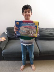 1 hour later… we were home. I went to my bed and found out that I got a Present from Santa. It was a Camp Nou 3d puzzle!!!